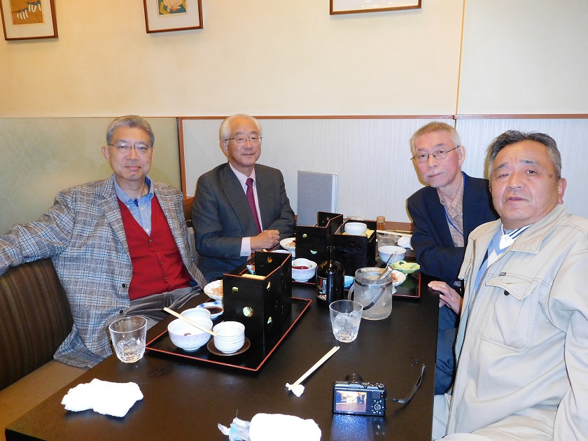 “機会があれば、お会いしたいなあ~~~” と思っていたところ、実藤さんが、学会で上京されるとの連絡があり、11月14日 品川にある「つきじ植村」に4人(実藤、瓜生、久岡、山内)が集い、旧交を温めました。