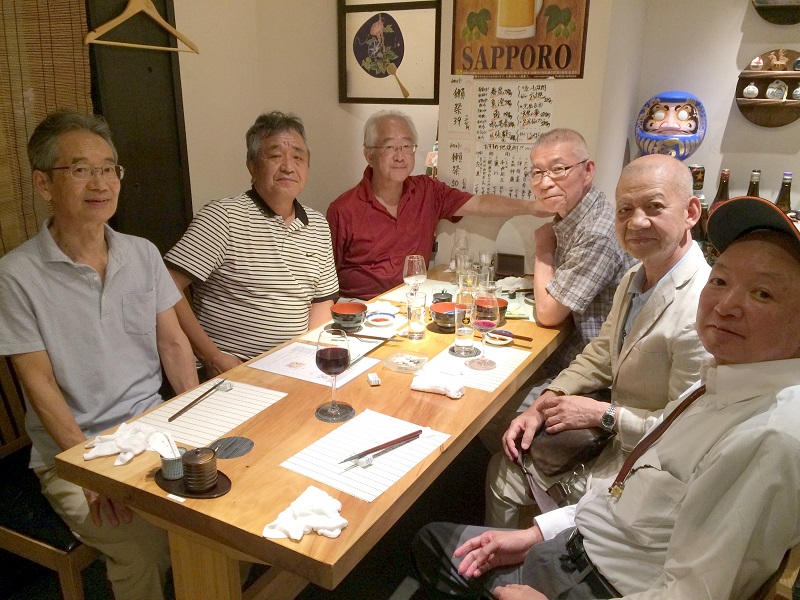 一昨年、昨年に引き続き、今年も実藤さんが、学会で上京されたのを機に、7月14日、日本橋の 「手造り和食:はな青」 というお店に、6人が集いました。