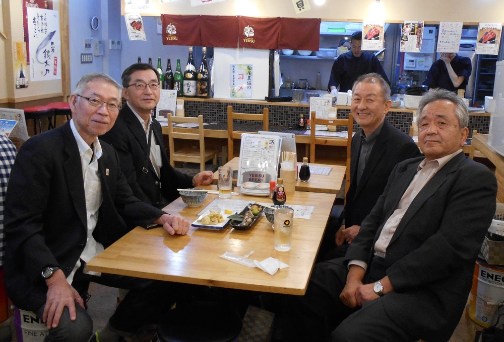 90歳を超えてなお矍鑠と実家で一人暮らしするお母さんの様子見ついでに瓜生が来博したので、博多駅周辺の居酒屋で瓜生、実藤、中西、古殿のG(爺)4会談と洒落ました。