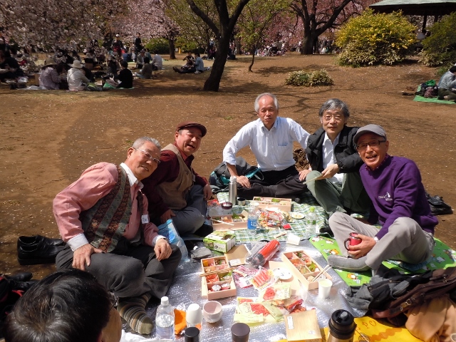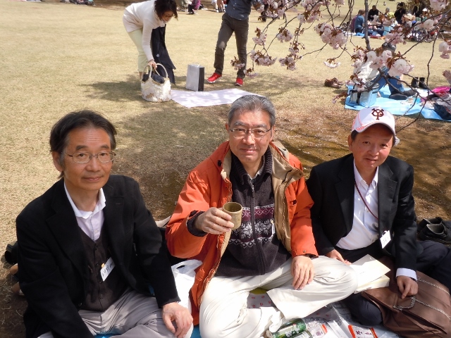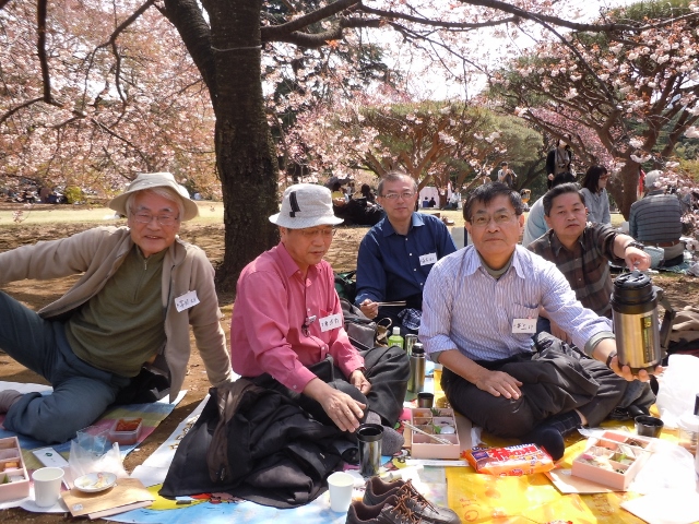 このお花見は、今年で、3回目となりますが、今回は、紅一点の大場さん他3名の初参加者があり、過去最大の15名となりました。