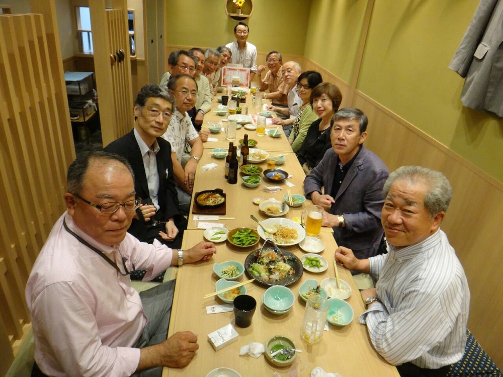 下関生涯学習プラザ「宙(そら)のホール」で翌日開催のシンポジウム「観光まちづくり-ようおいでました下関へ」の司会を内田(3年7組)のご主人がされこともあり、「ついでに飲ろう会」に東京から内田初参加、加えて東京から安光(3組)も初参加しまして15名が集まりました。